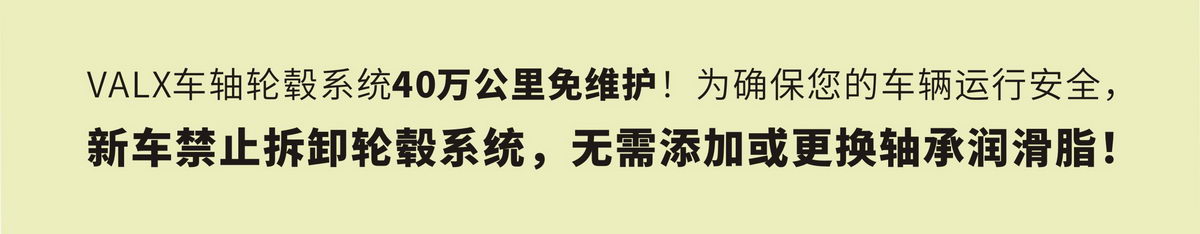 載荷10~13噸/軸,輪轂系統(tǒng)2年或40萬(wàn)公里免維護(hù)。