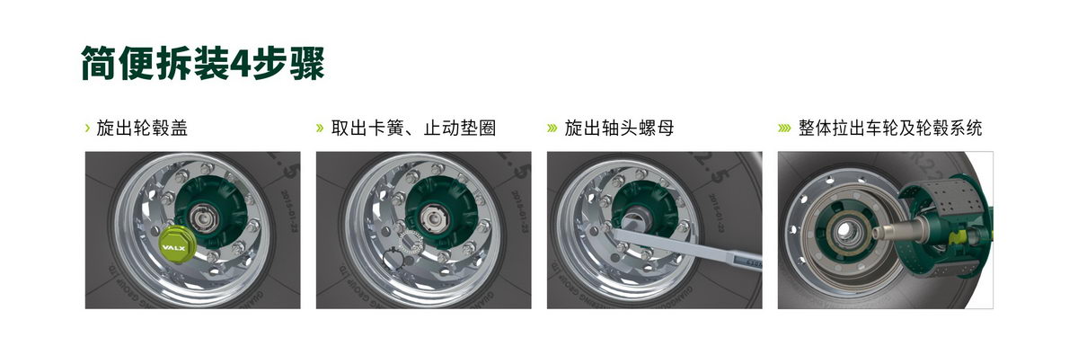 VALX輪轂系統(tǒng)拆裝便捷,簡(jiǎn)單4個(gè)步驟就能實(shí)現(xiàn)剎車片的更換。
