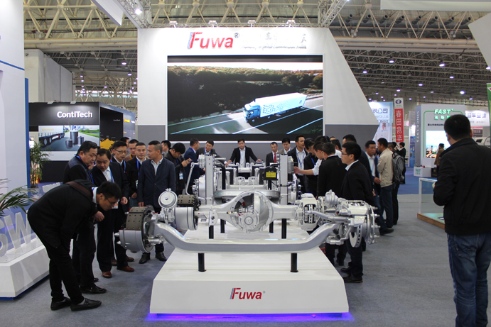 此次展會(huì),富華展出的整套商用車(chē)底盤(pán)行走機(jī)構(gòu)以及冷藏集裝箱產(chǎn)品,吸引了大批客戶及媒體的關(guān)注,展位現(xiàn)場(chǎng)異常火爆,成為本屆展會(huì)的一大亮點(diǎn)。 富華帶來(lái)的全系產(chǎn)品包括:卡車(chē)轉(zhuǎn)向前橋、卡車(chē)后橋、牽引鞍座、(電動(dòng))支腿、Fuwa富華系列車(chē)軸、VALX沃勝系列車(chē)軸、空氣懸掛、適用于轎運(yùn)車(chē)的中置車(chē)軸以及自轉(zhuǎn)向車(chē)軸等產(chǎn)品。